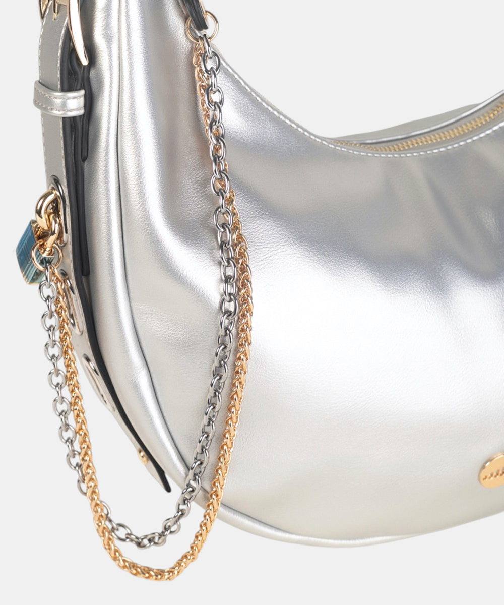 La bandolera Urban Cadenas en PU color plata combina un diseño moderno con un estilo versátil y llamativo. Su acabado en poliuretano aporta resistencia y un aspecto sofisticado, mientras que el formato bandolera ofrece comodidad y practicidad en el uso diario. El tono plata, elegante y actual, la convierte en el accesorio perfecto para dar un toque distintivo a tus looks casuales o de noche.