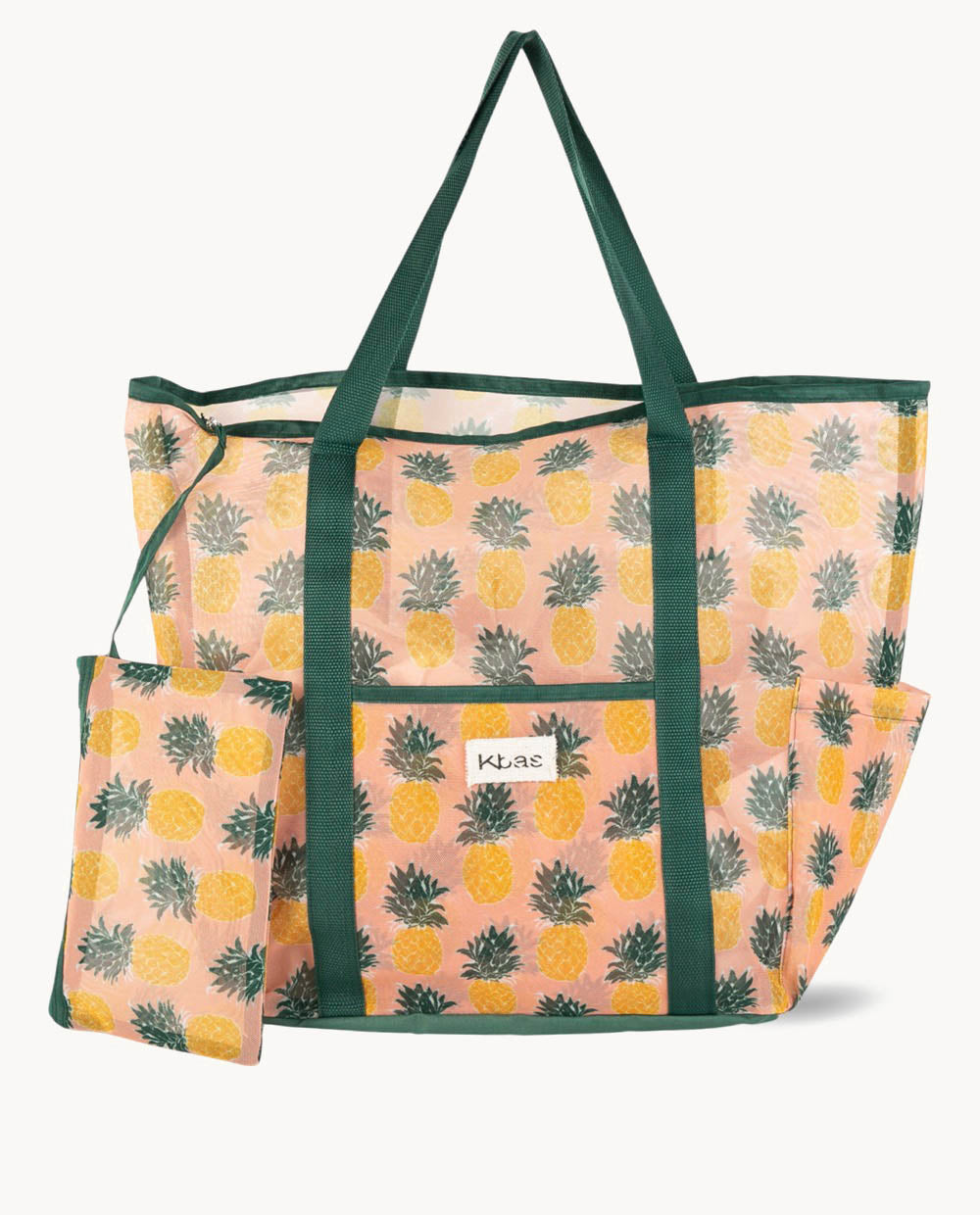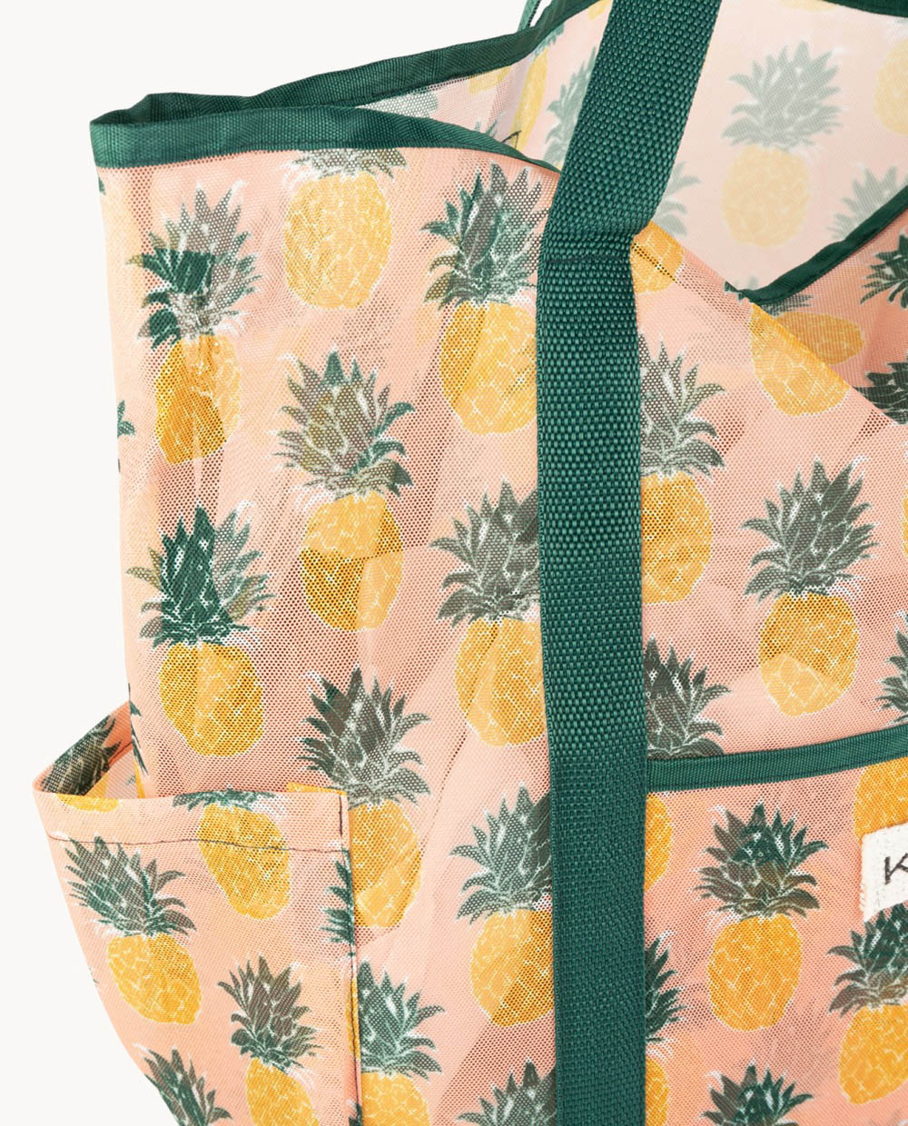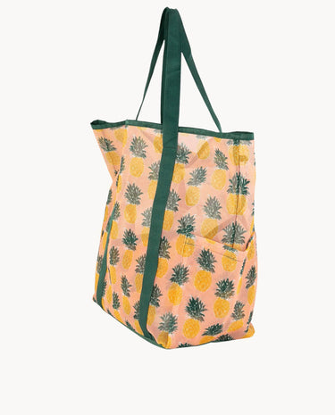 Lleva todo lo esencial a la playa con este vibrante bolso de poliéster. Su estampado de piñas y color verde le dan un toque tropical. Es perfecto para la temporada SS26. Con un tamaño de 50 (largo) x 20 (ancho) x 38 (alto) cm, ofrece amplio espacio. Cuenta con asas de hombro para mayor comodidad y un cierre abierto para un acceso rápido.