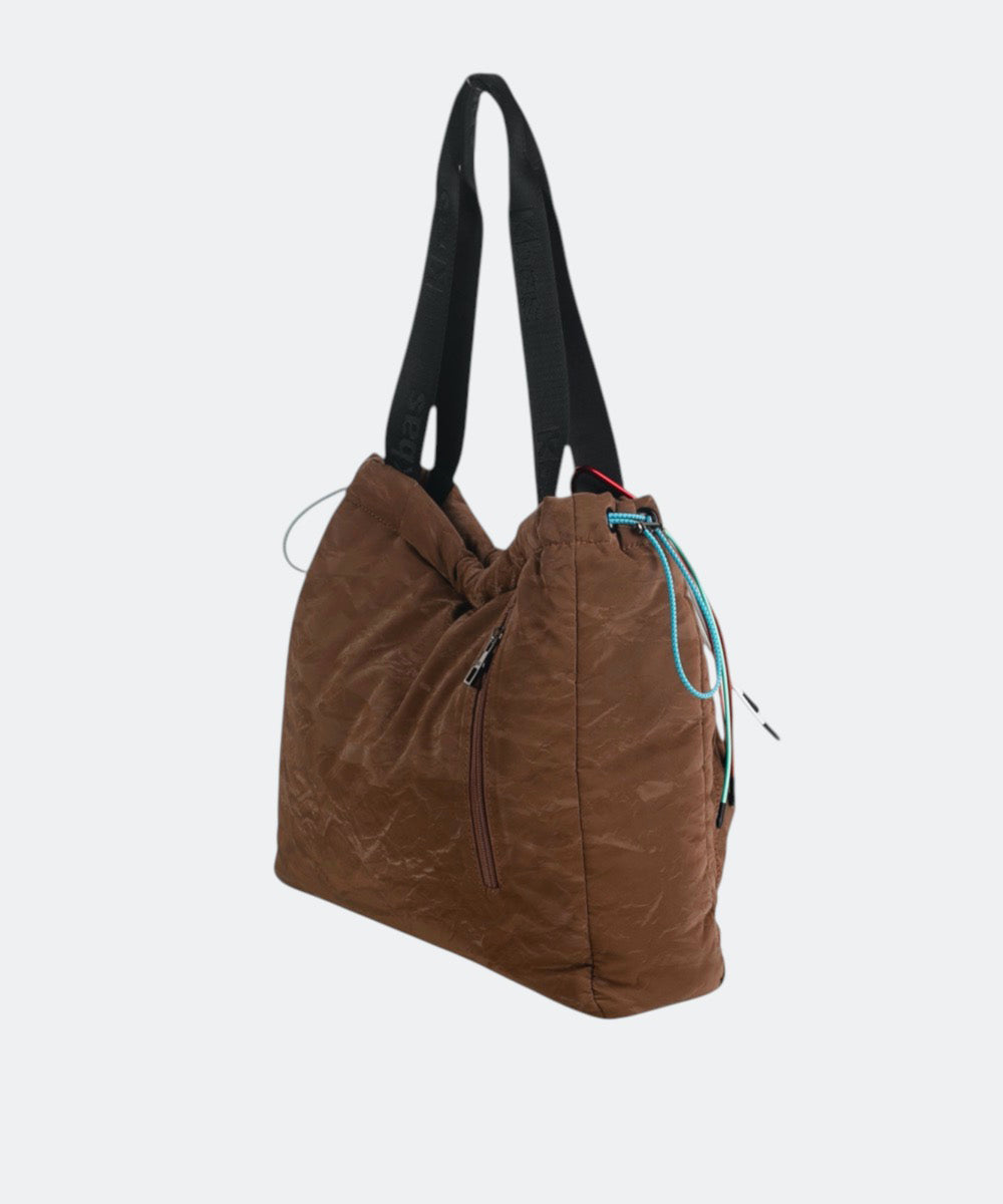 El Tote de Nylon en color cuero es la elección perfecta para quienes buscan un bolso que combine funcionalidad y estilo. Fabricado en 100% nylon, este material es conocido por su durabilidad y resistencia al agua, lo que lo convierte en una opción práctica para el uso diario.