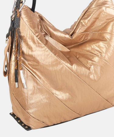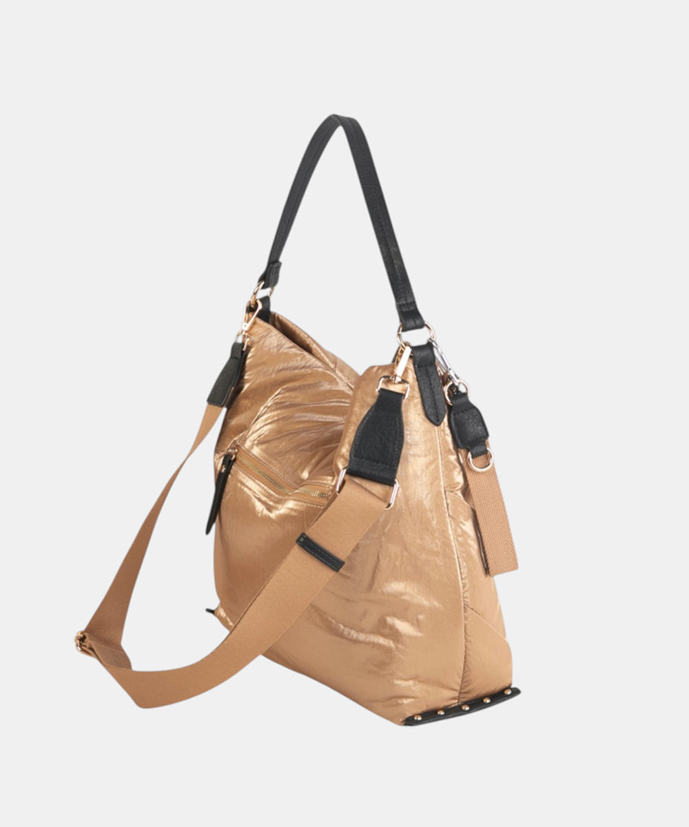 El hobo Urban Blonda en nylon color oro combina estilo moderno y practicidad en un diseño ligero y versátil. Su confección en nylon aporta resistencia, comodidad y fácil mantenimiento, mientras que el formato hobo asegura funcionalidad en el día a día. El tono oro, elegante y llamativo, lo convierte en un accesorio ideal para añadir un toque distintivo y sofisticado a tus looks urbanos o casuales.