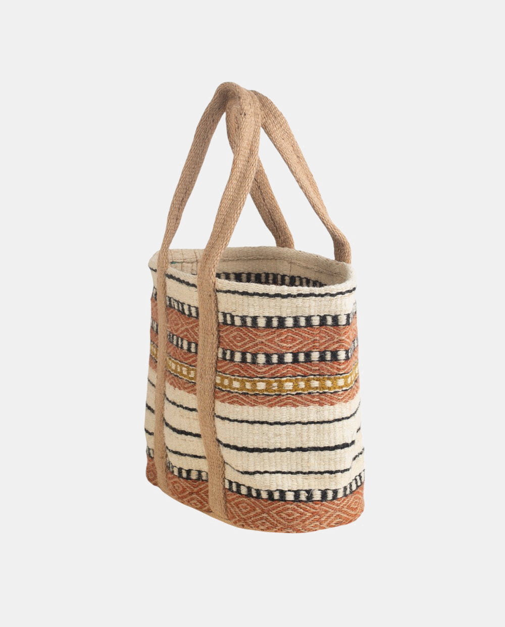 - Material: Hecho de yute, conocido por su resistencia y textura rústica, este bolso es fuerte y amigable con el medio ambiente.