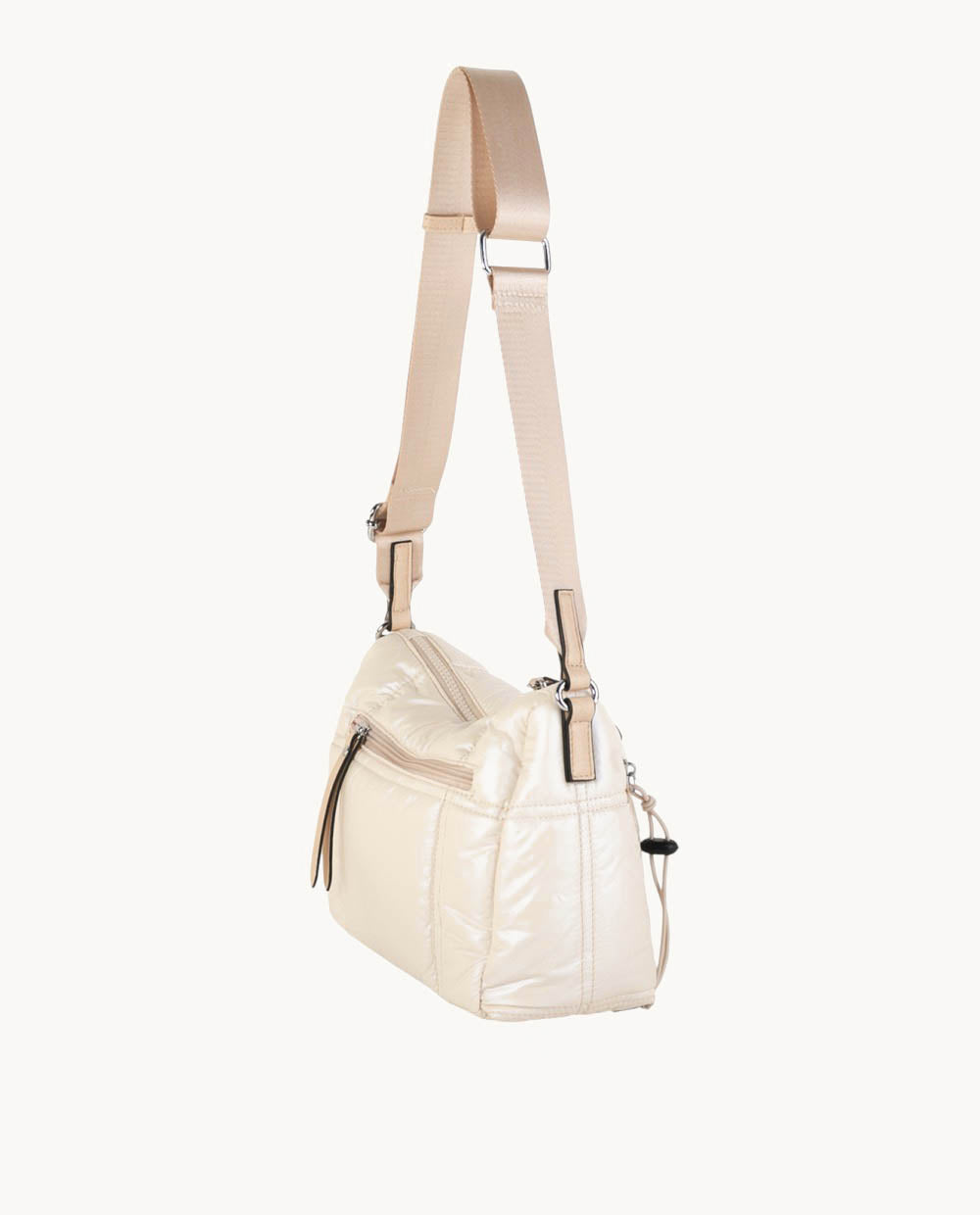 BANDOLERA NYLON, CON CREMALLERA, COLOR MARFIL
