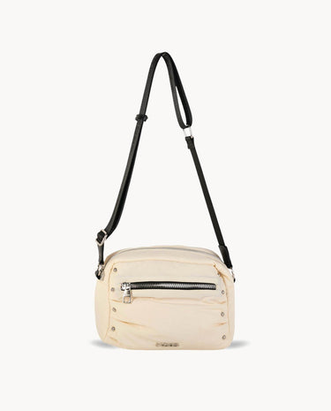 La bandolera de nylon en color marfil es el accesorio perfecto para quienes buscan un diseño moderno y funcional. Con un acabado suave y ligeramente acolchado, esta bandolera no solo es elegante, sino también cómoda para el uso diario.