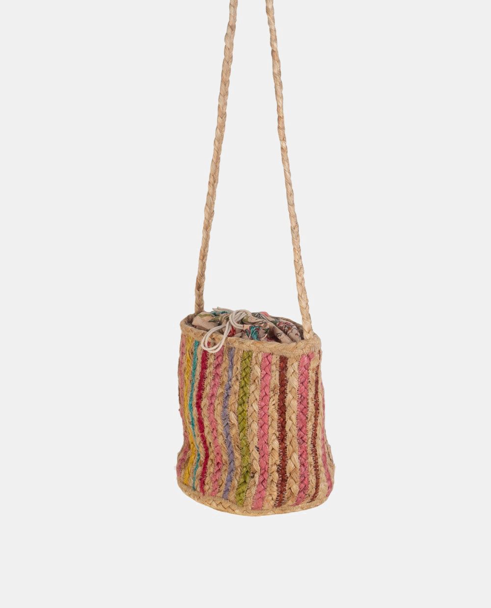 Ce sac se distingue par sa fermeture de type "saco", qui sécurise le contenu tout en ajoutant une note décontractée au design. Sa palette multicolore rend le sac attrayant et facile à assortir avec différentes tenues, apportant une note de fraîcheur et de gaieté.