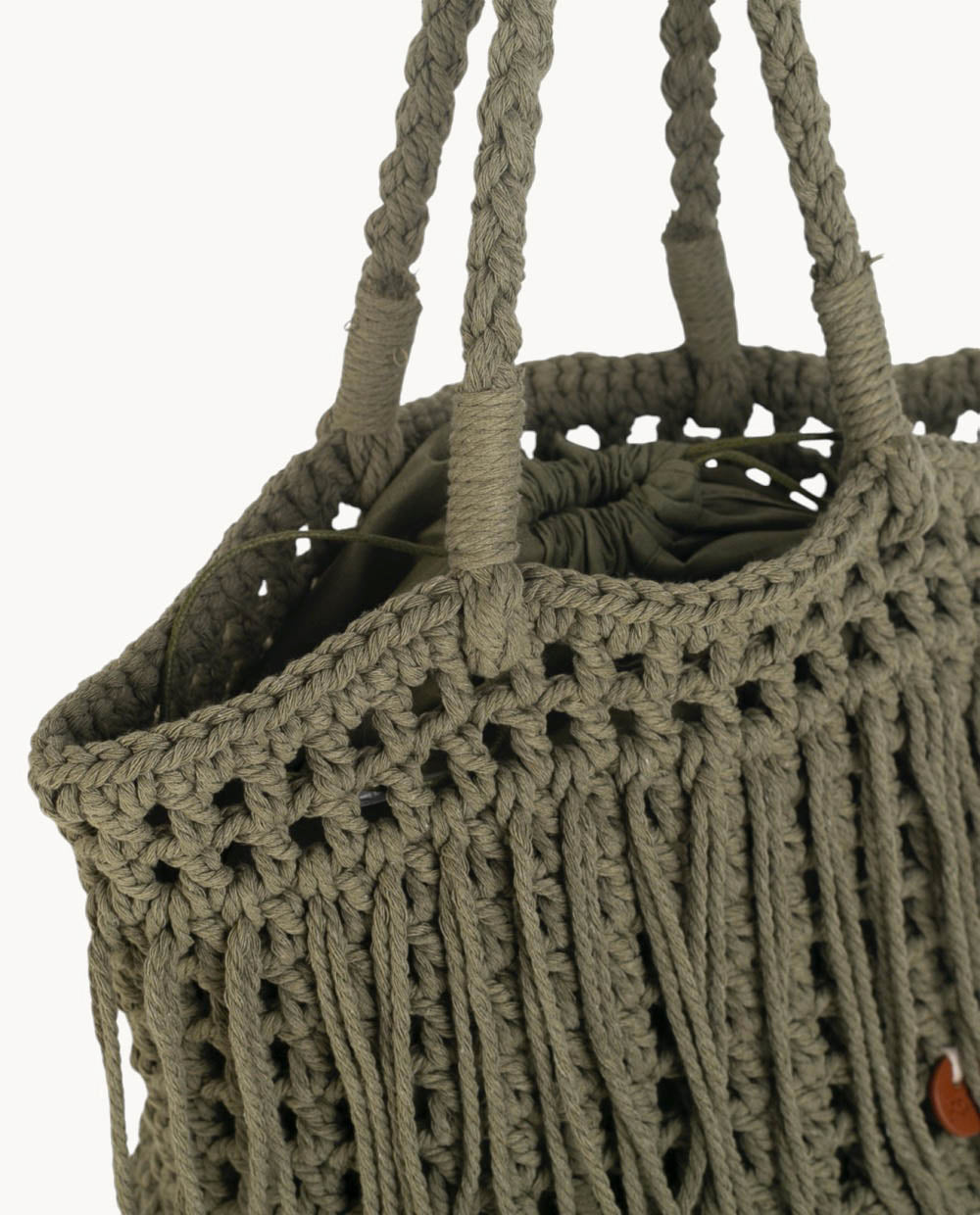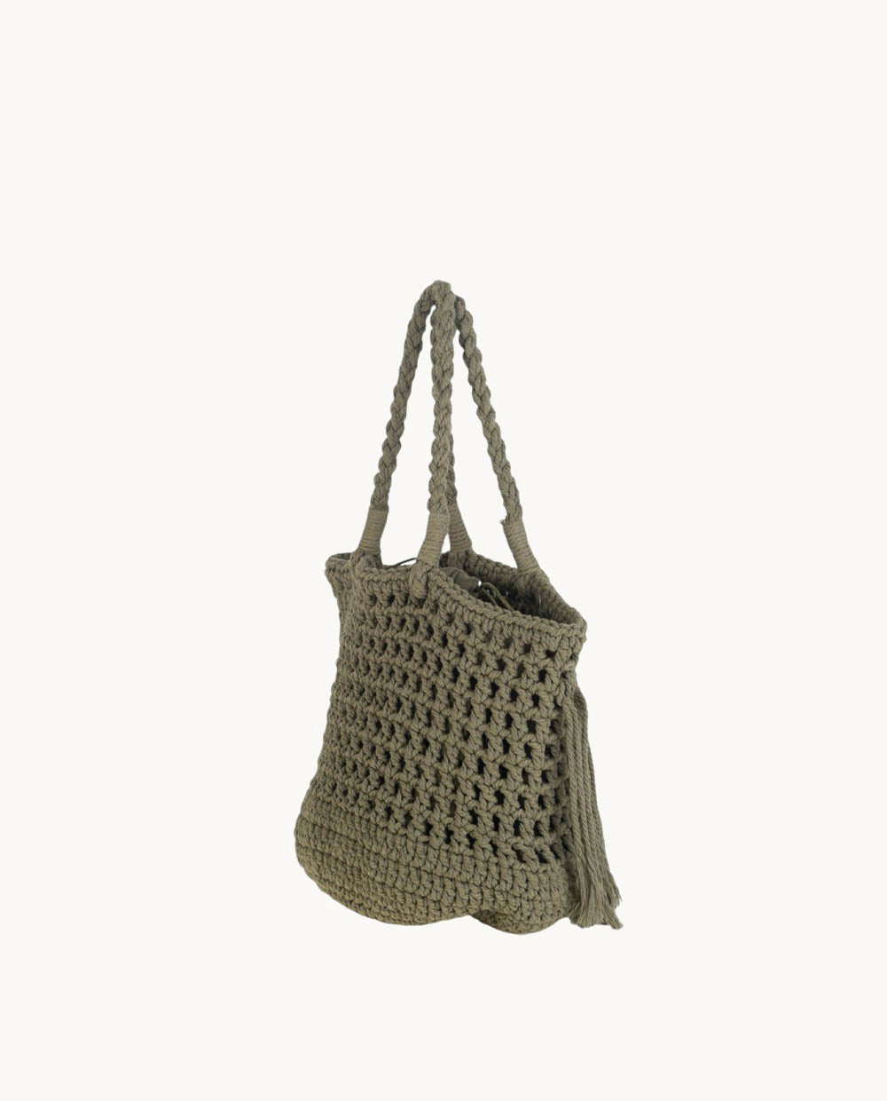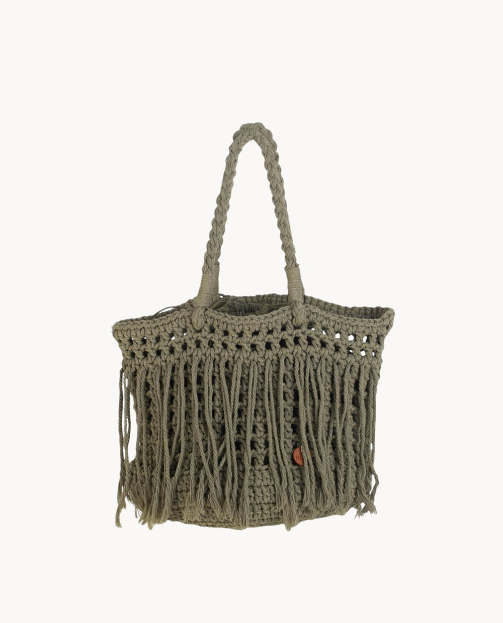 BOLSO DE HOMBRO ALGODON, CIERRE SACO, COLOR KAKI