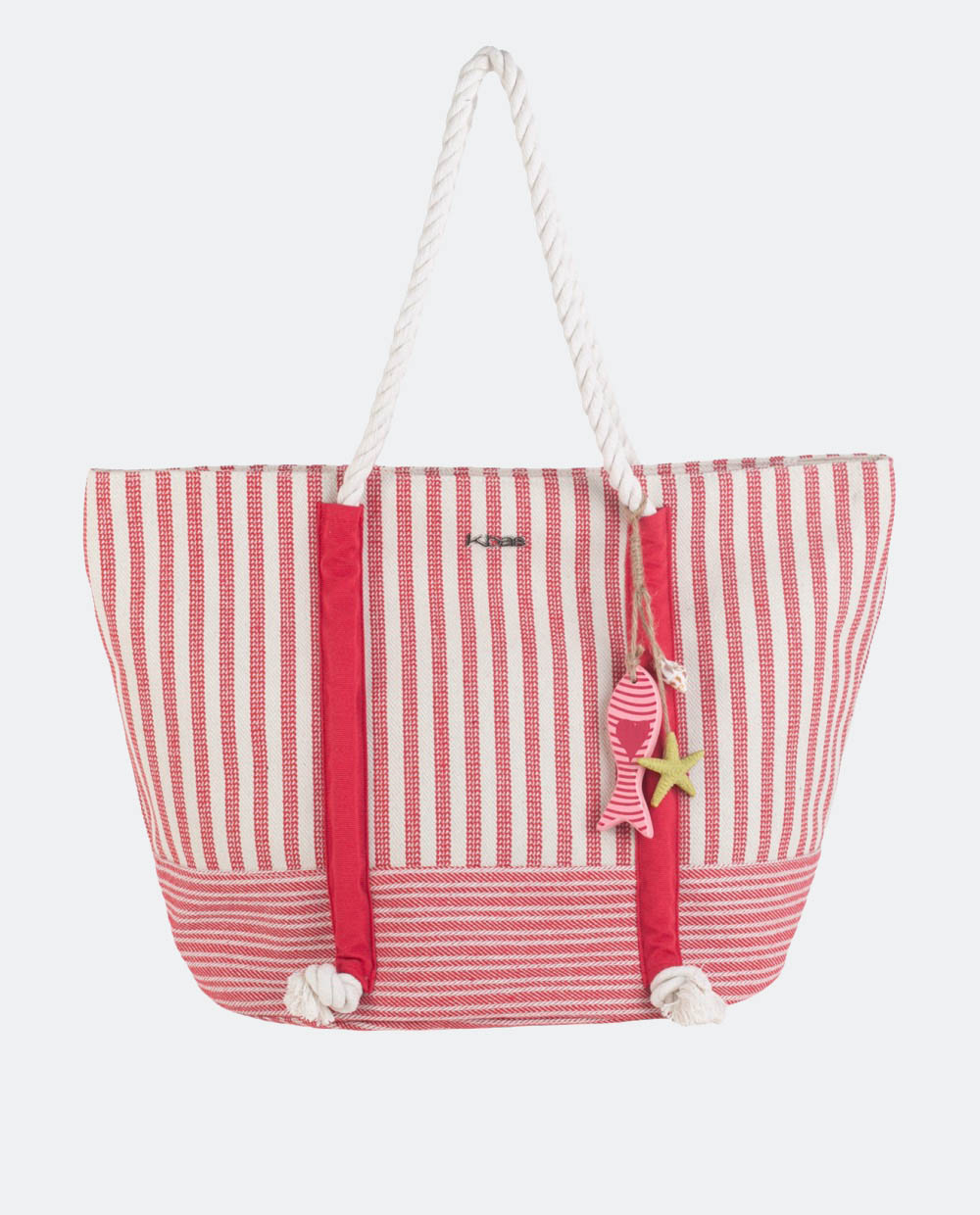 BOLSO PLAYA LONA, CON CREMALLERA, COLOR ROJO