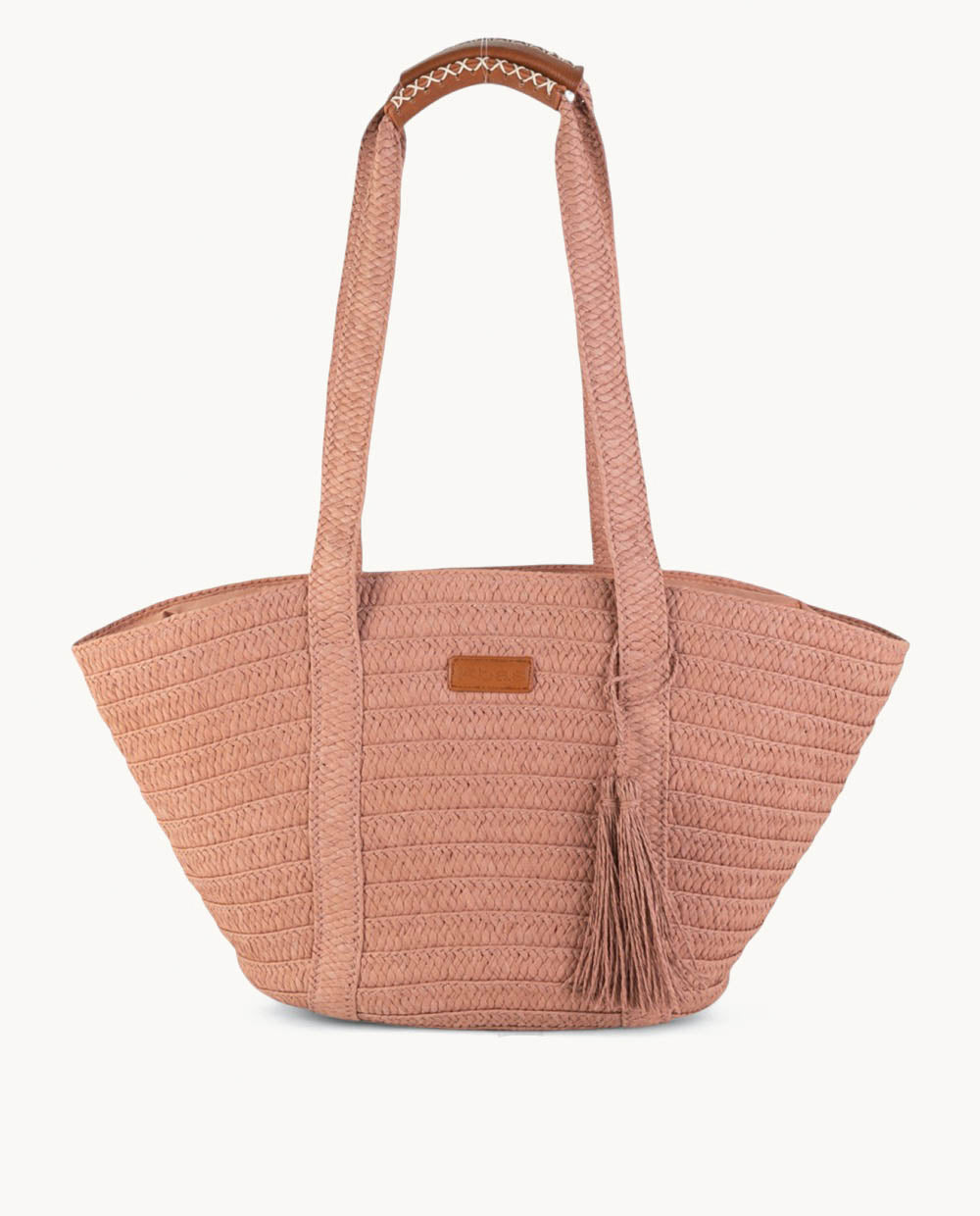 Luce un estilo veraniego y natural con este hermoso capazo de fibra natural. Su diseño en color rosa palo es perfecto para tus días de playa o paseos, e incluye una práctica cremallera para mantener tus pertenencias seguras. Sus medidas son 53 (largo) x 20 (ancho) x 28 (alto) cm y se lleva cómodamente al hombro. Presenta un estampado liso que lo hace muy versátil para combinar.