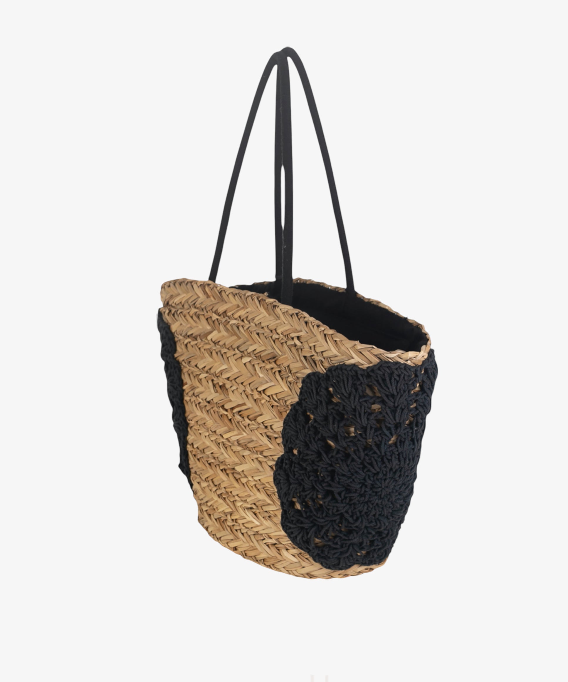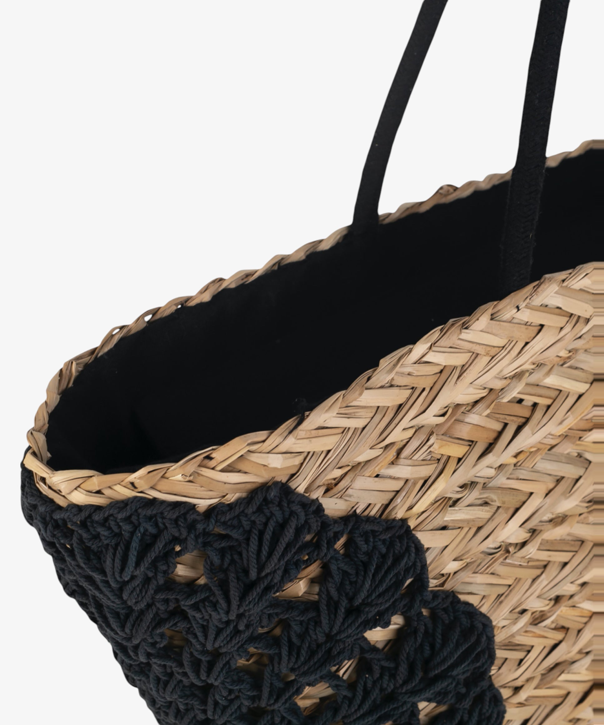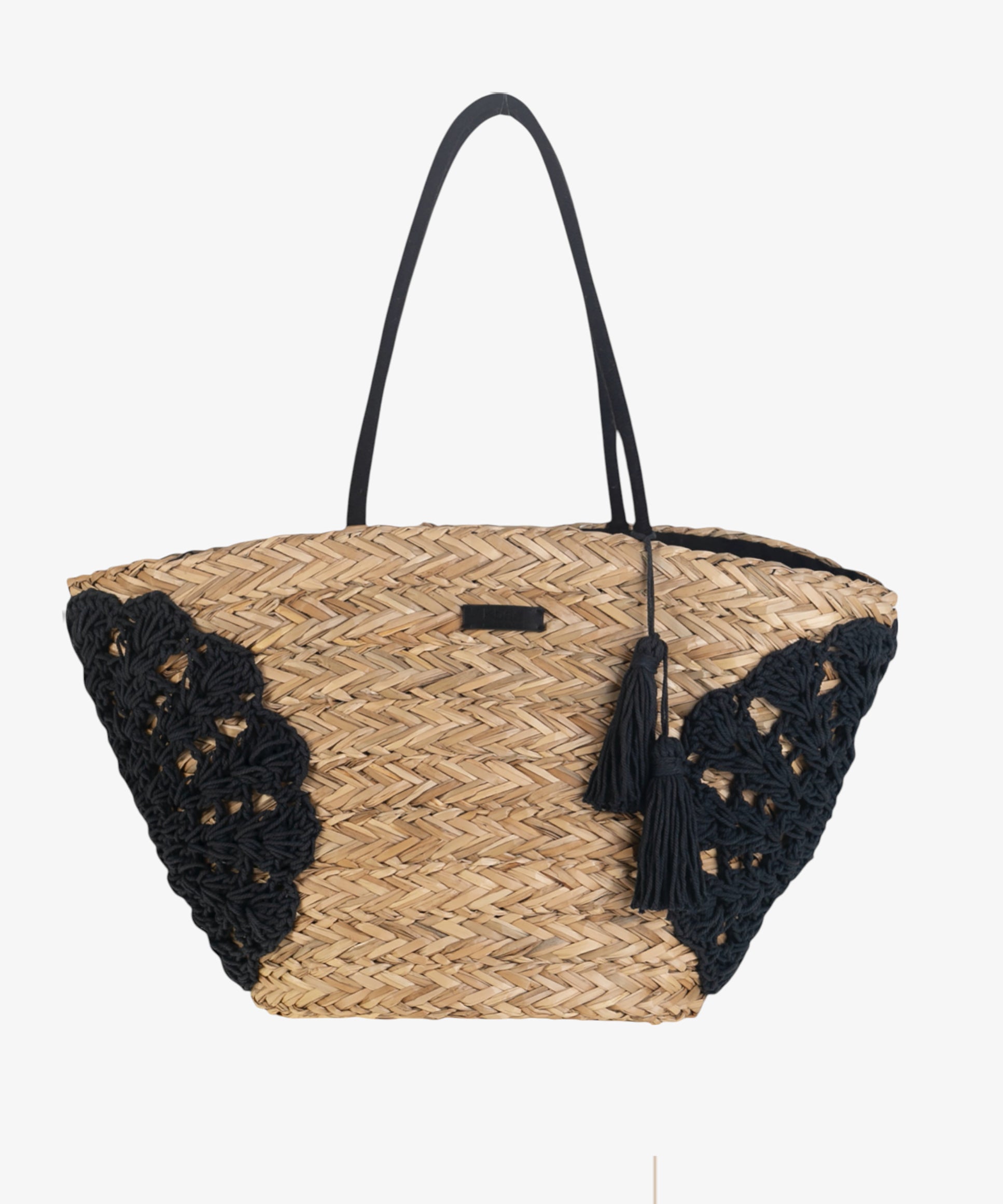 Este capazo de seagrass con cremallera en color negro destaca por su diseño artesanal y funcional, perfecto para la temporada estival. El seagrass aporta frescura y ligereza, mientras que la cremallera mantiene tus pertenencias seguras en todo momento. El tono negro, elegante y atemporal, lo convierte en un accesorio versátil que se adapta fácilmente a looks casuales o más sofisticados.