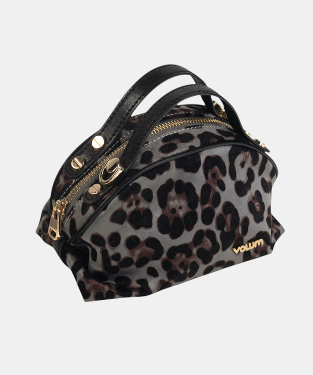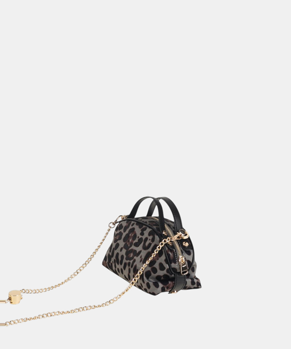 Este bolso presenta un diseño en un sofisticado color gris, que se adapta a diferentes estilos y ocasiones, desde eventos formales hasta salidas casuales. Su estampado de leopardo añade un toque de originalidad, permitiendo que destaque sin ser excesivo.