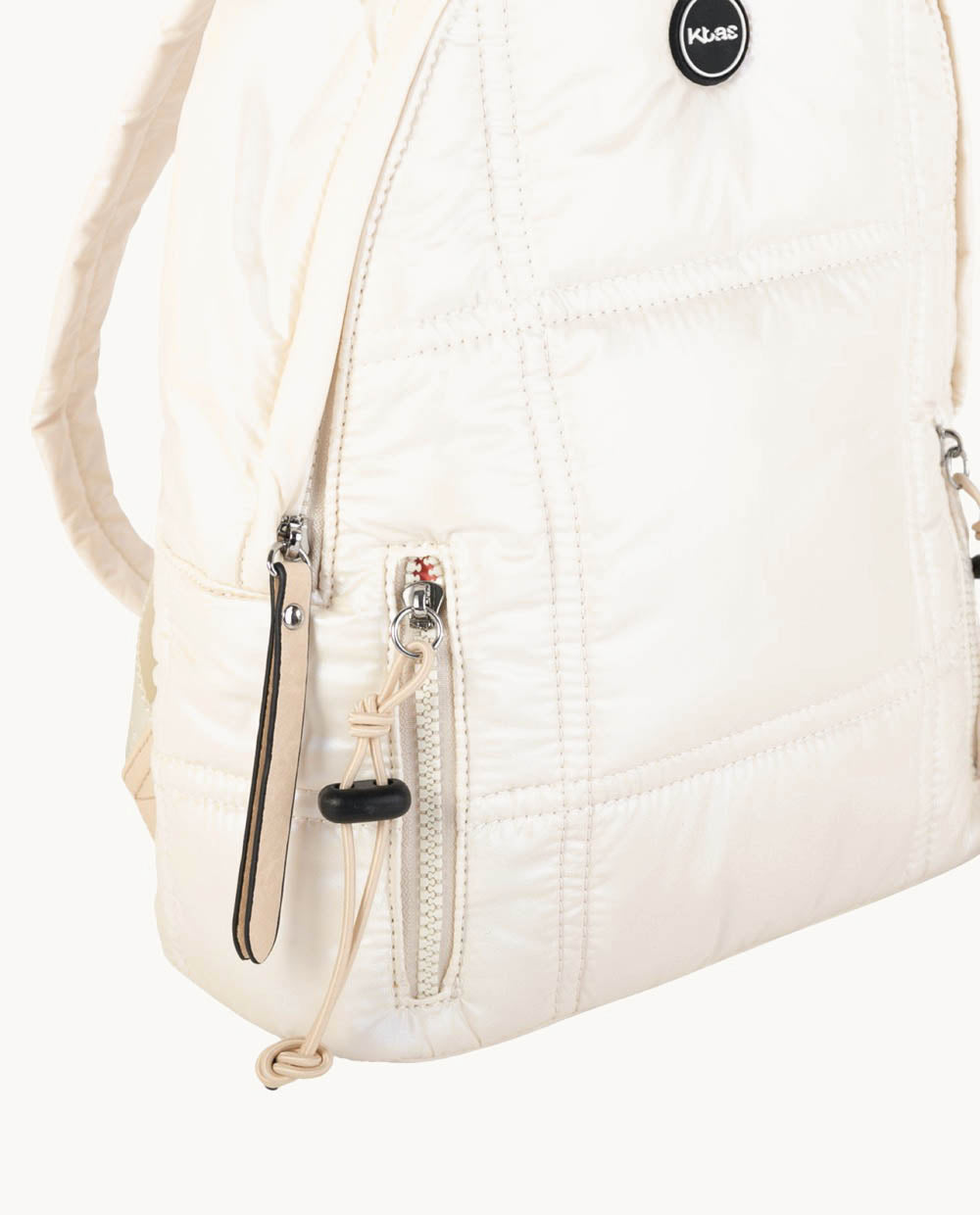 MOCHILA NYLON, CON CREMALLERA, COLOR MARFIL
