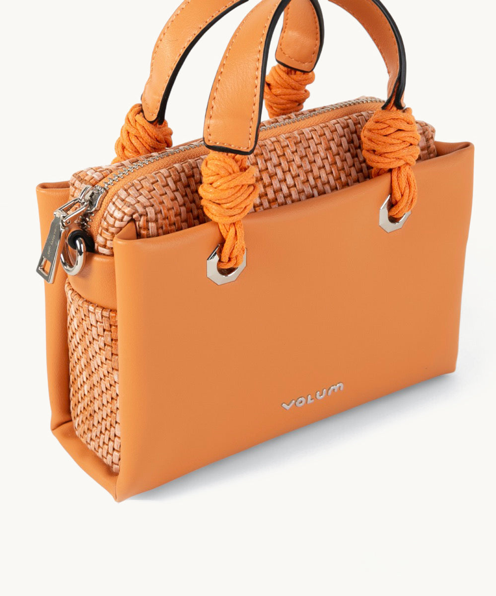 Fabricada en una combinación de poliuretano (PU) y un tejido trenzado, esta bolsa presenta un aspecto texturizado y atractivo. Su forma rectangular con bordes suaves la hace fácil de llevar y combinar con diferentes atuendos.