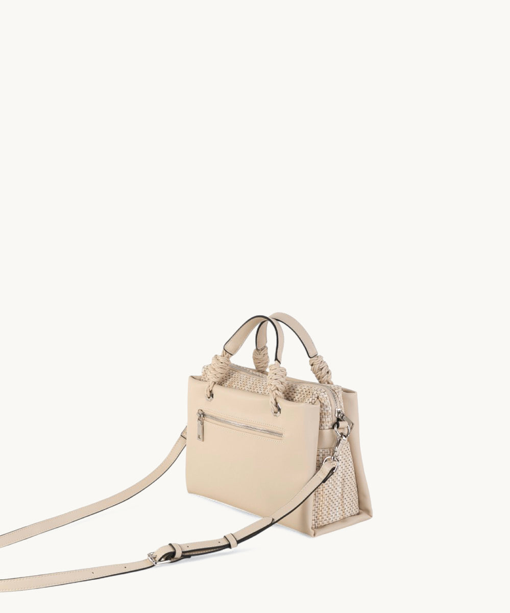 • Asas: Las asas de cuerda trenzada no solo aportan un aspecto moderno, sino que también aseguran un agarre cómodo.