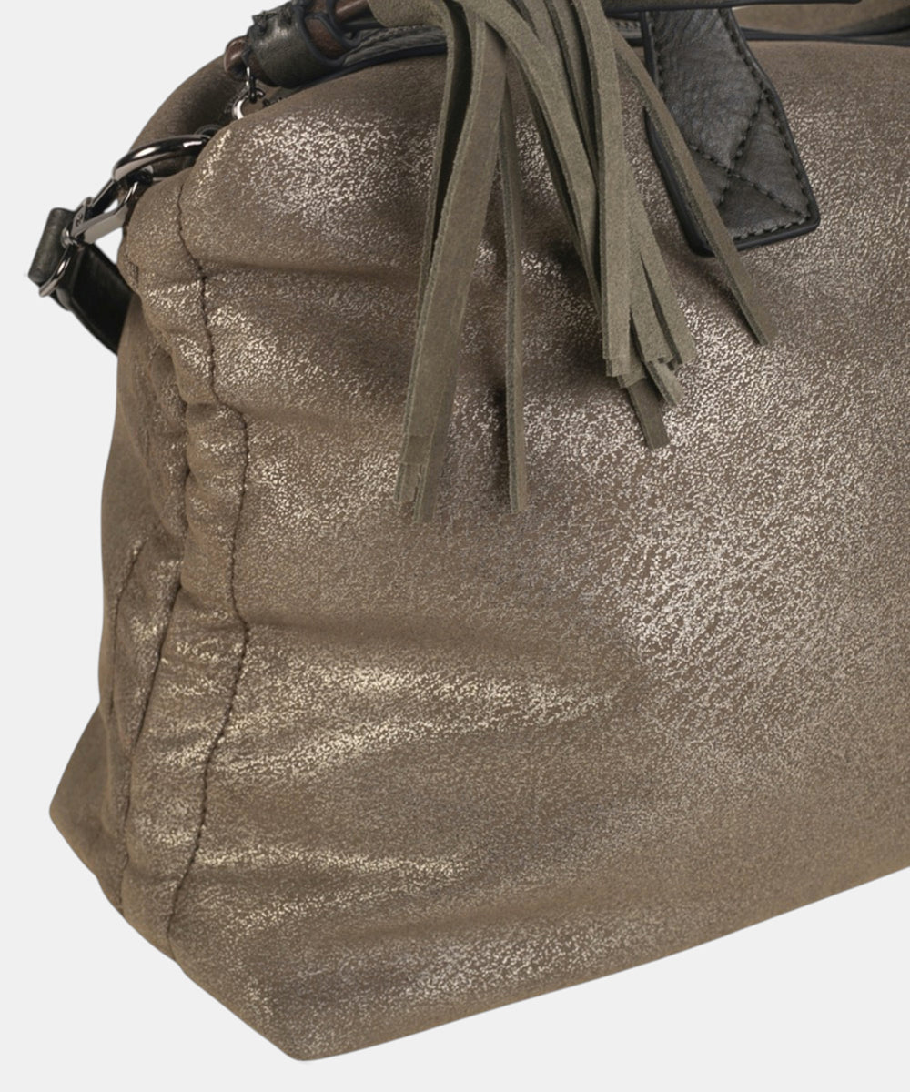El bolso bowling Urban Haya en poliéster color kaki combina diseño contemporáneo y funcionalidad en un accesorio amplio y versátil. Su confección en poliéster aporta resistencia y ligereza, mientras que el formato bowling ofrece comodidad y capacidad para el día a día. El tono kaki, actual y fácil de combinar, lo convierte en un complemento ideal para completar looks urbanos o casuales con un aire moderno.