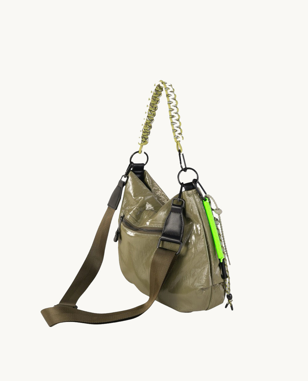 La bandolera URBAN RANIA en nylon kaki est un accessoire moderne et fonctionnel, conçu pour s'adapter à un style de vie urbain. Avec ses dimensions de 30 cm de long, 10 cm de large et 23 cm de haut, elle offre un espace suffisant pour tous vos essentiels quotidiens.